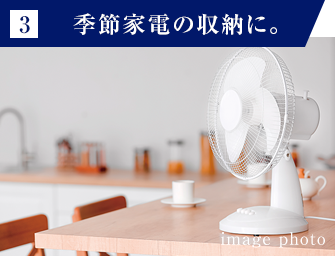 一年の約半分は使うことがない、扇風機や暖房器具といった季節家電を収納できるので、お部屋がスッキリと片付きます。