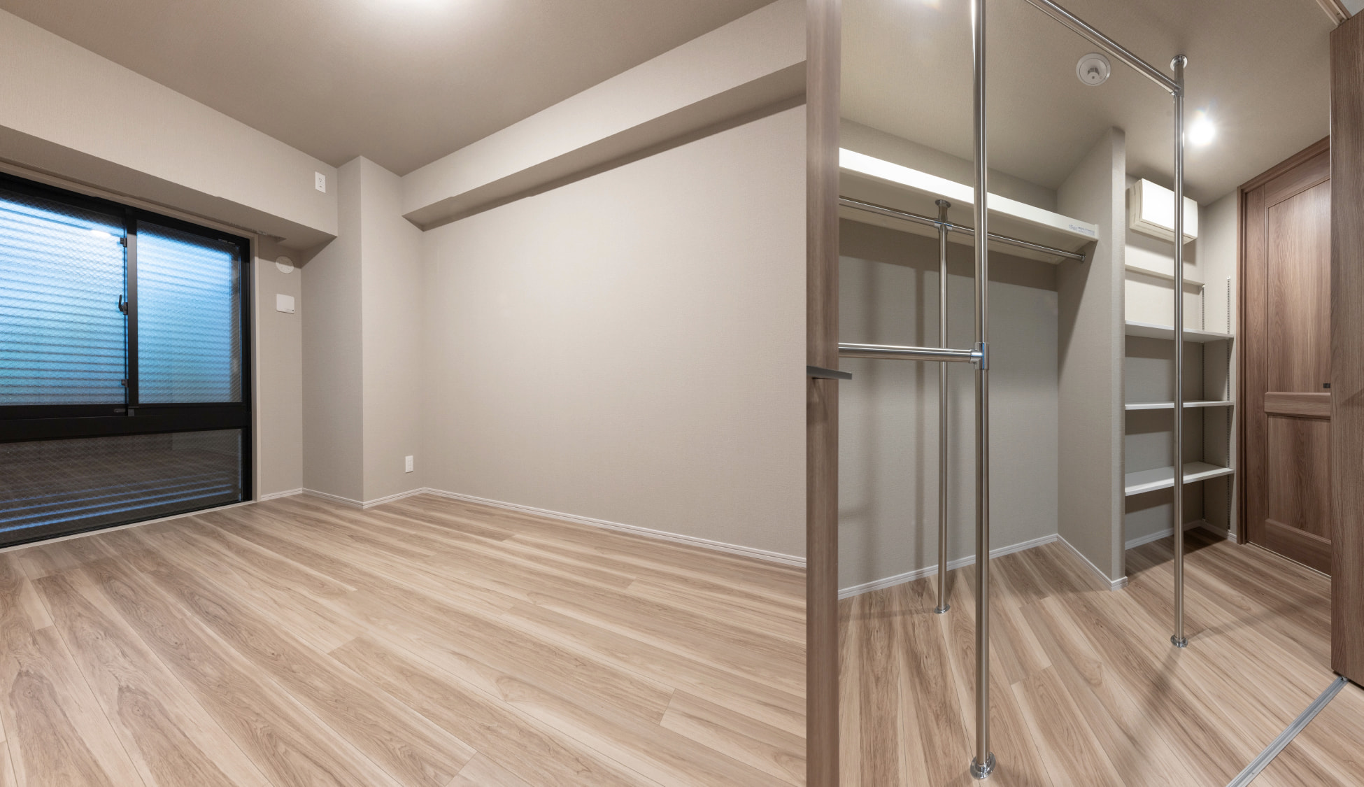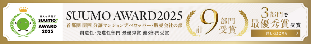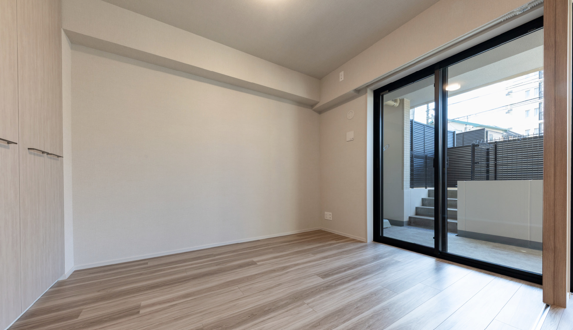 バルコニー側の柱型の多くを居室外に出したアウトフレーム工法を採用。デッドスペースの少ないスクエアなすっきりした居室空間が生まれます。 ※一部除く