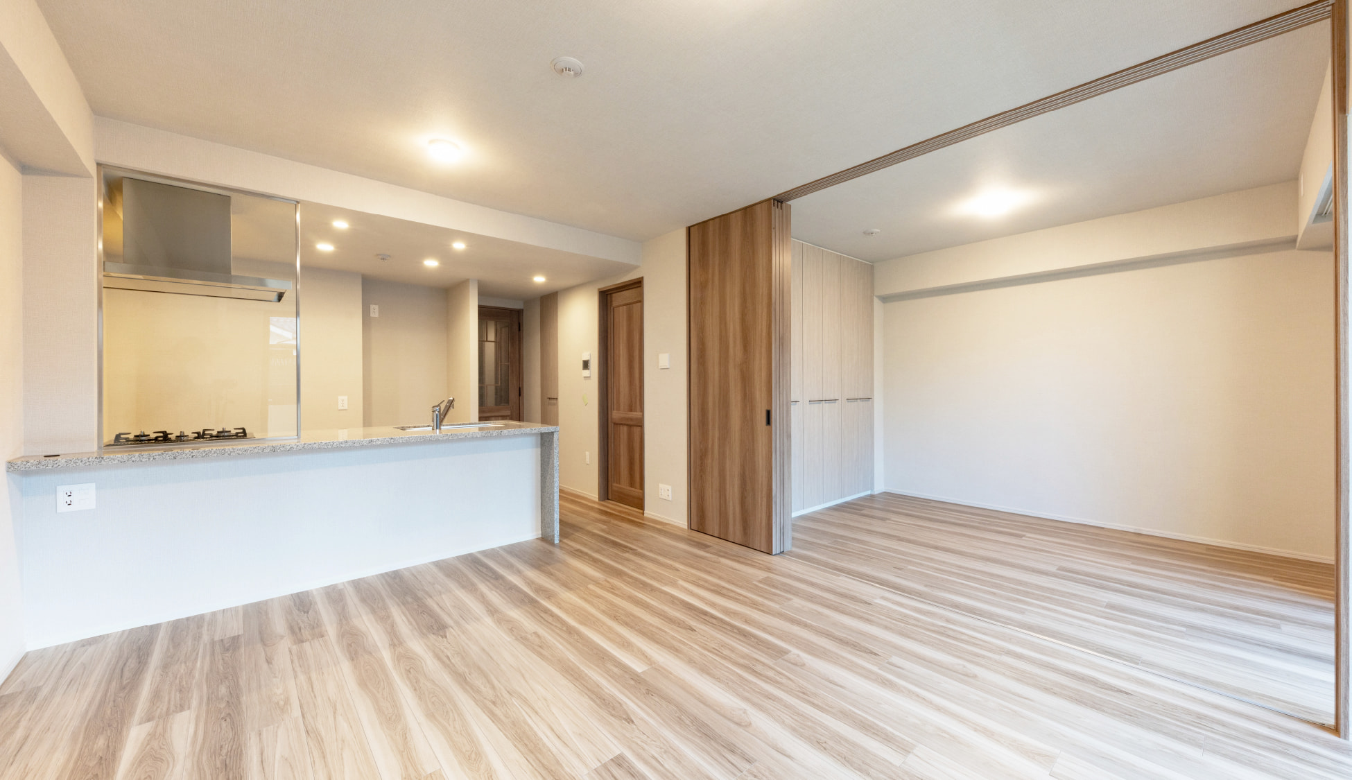 ※リビング・ダイニング・キッチンの帖数表記は、ビング・ダイニング・キッチンの扉より内側の面積からキッチンの面積を含んだもので算出しております。