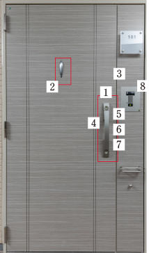 窓からの侵入に備えるため、1F及び2Fの一部住戸、ルーフバルコニー付き住戸(面格子付窓、FIX窓、ガラスブロック窓除く)のサッシに防犯窓センサーを設置。システム作動中にセンサーが異常を感知すると、住戸内に警報音を発して威嚇するとともに、警備会社へ通報します。
