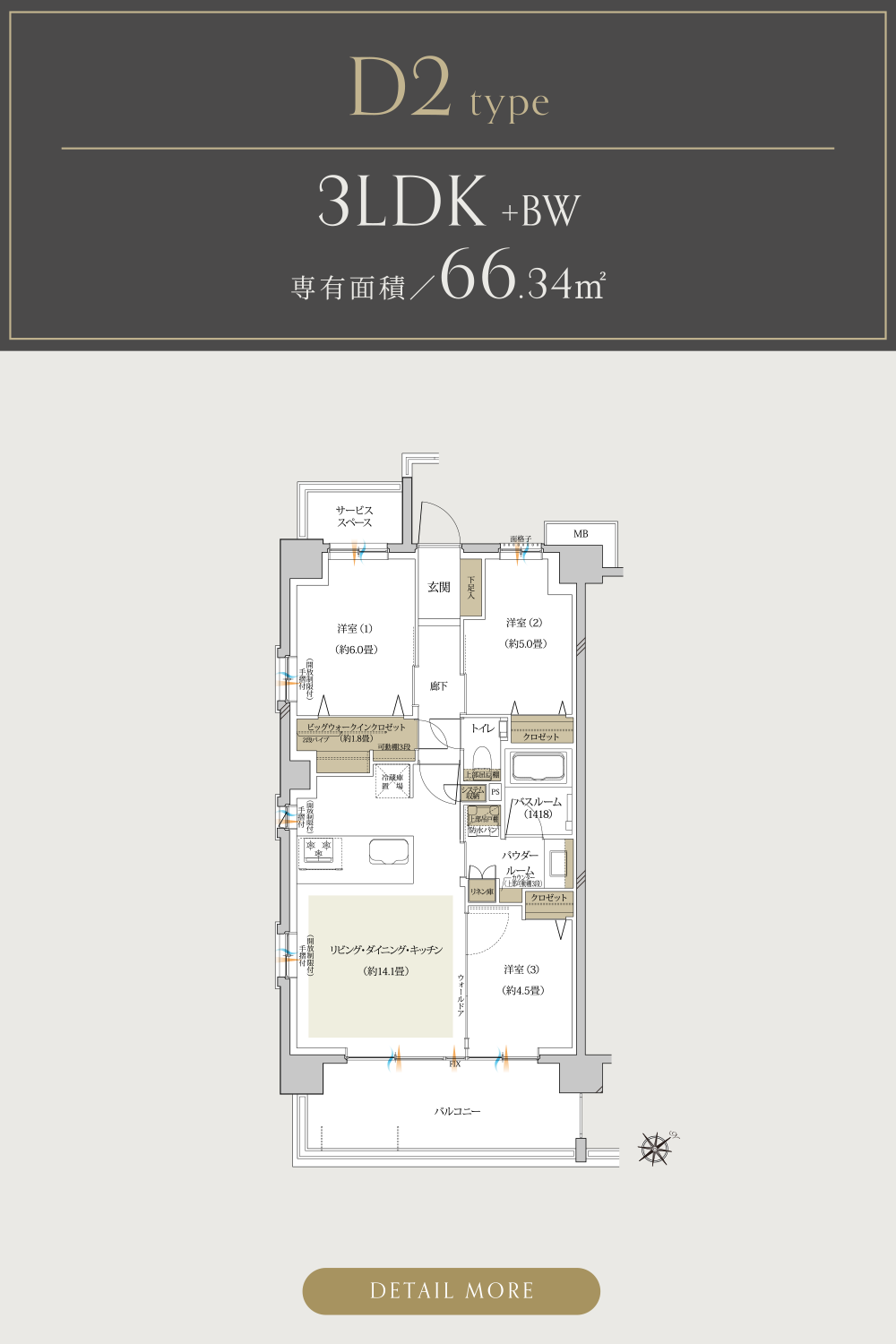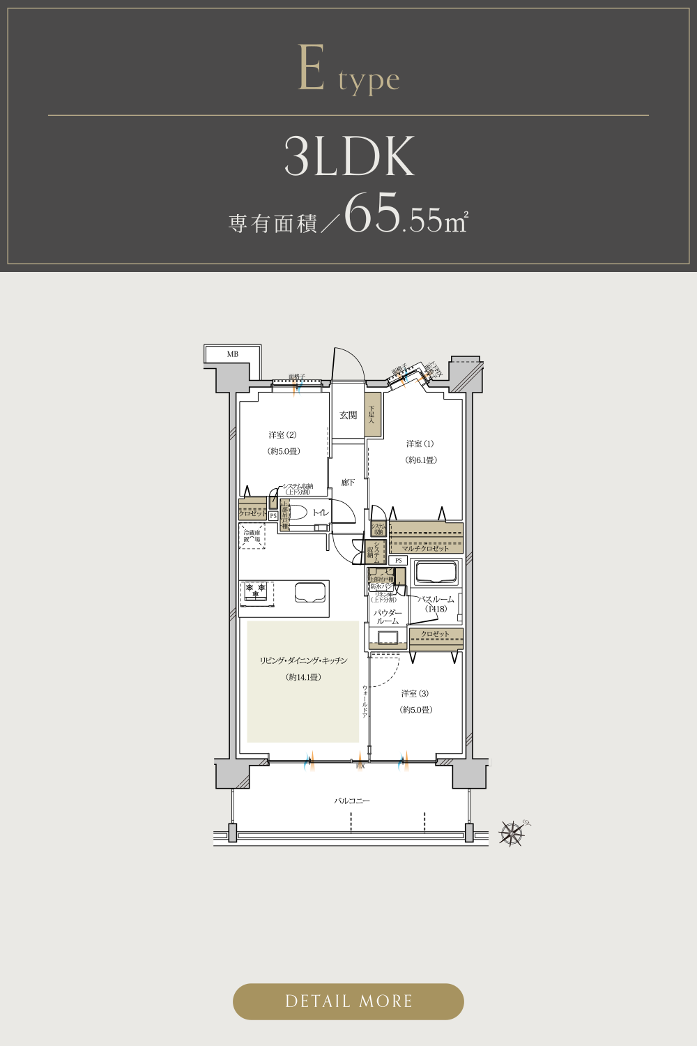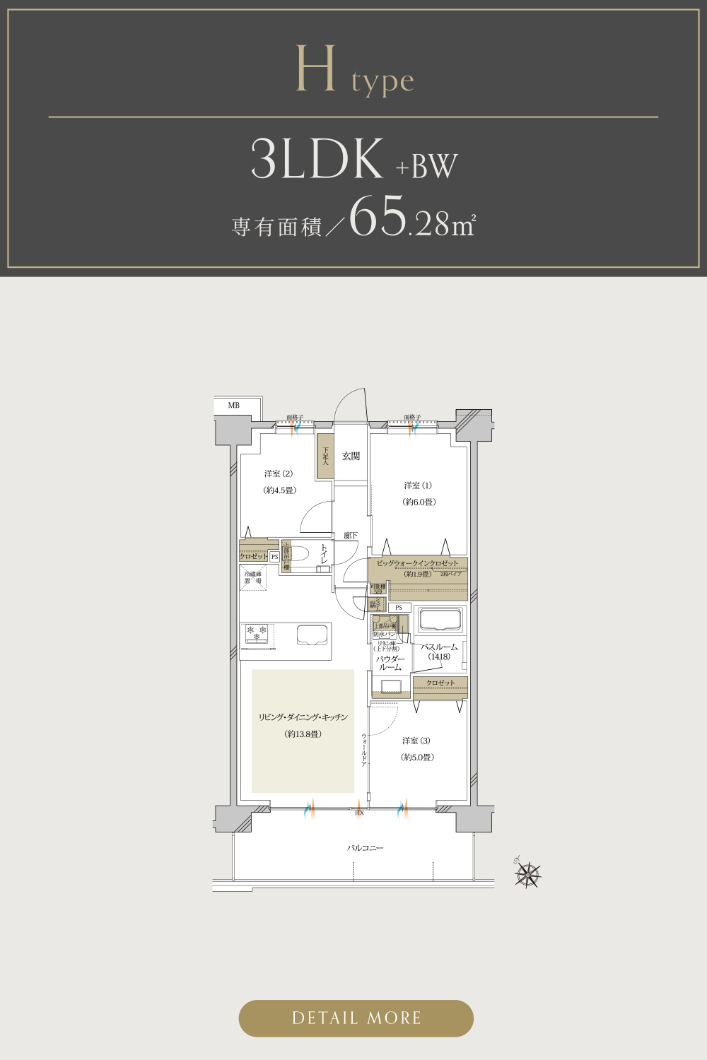 全邸3LDK、南東・南西向きの間取りを実現。