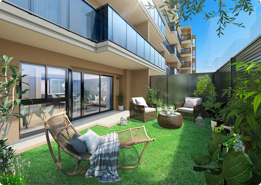 プライベートガーデン(Dgタイプ)完成予想CG※掲載の写真は2024年5月、2025年2月撮影のものです。