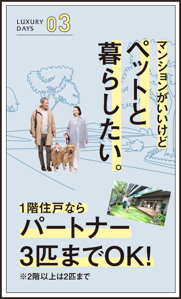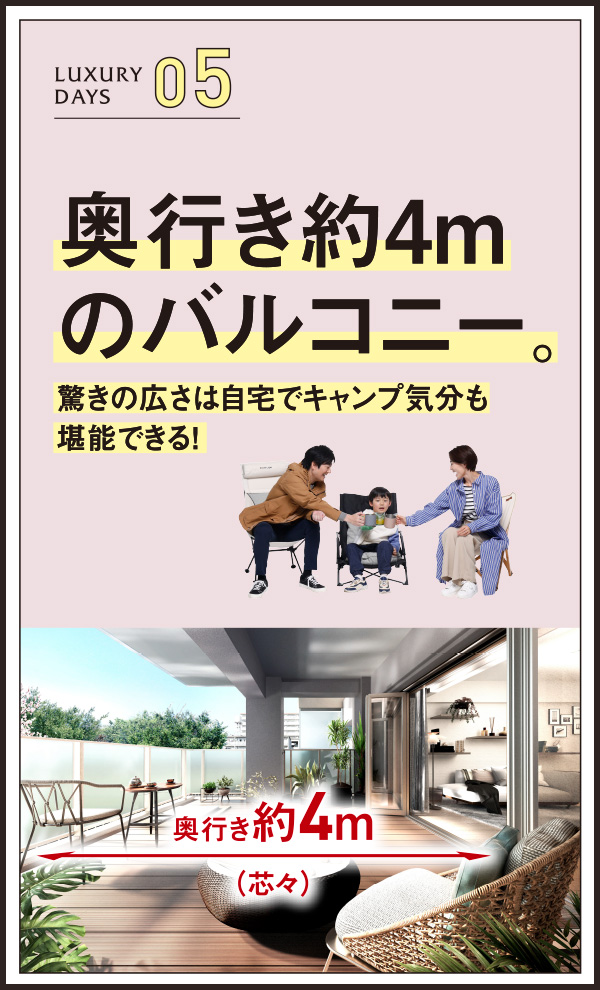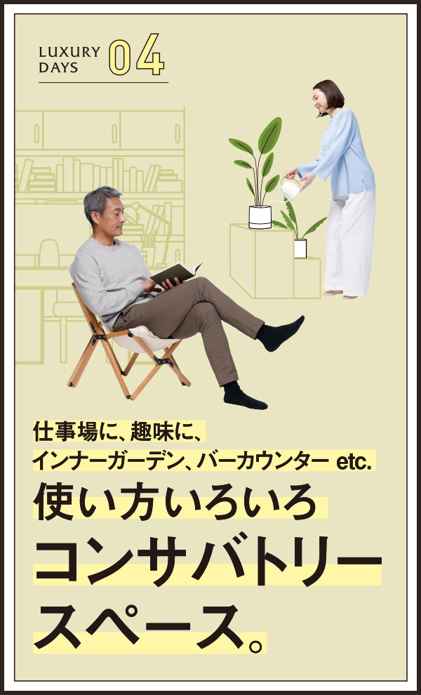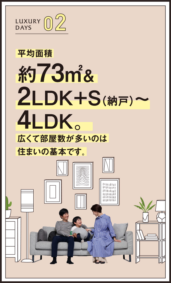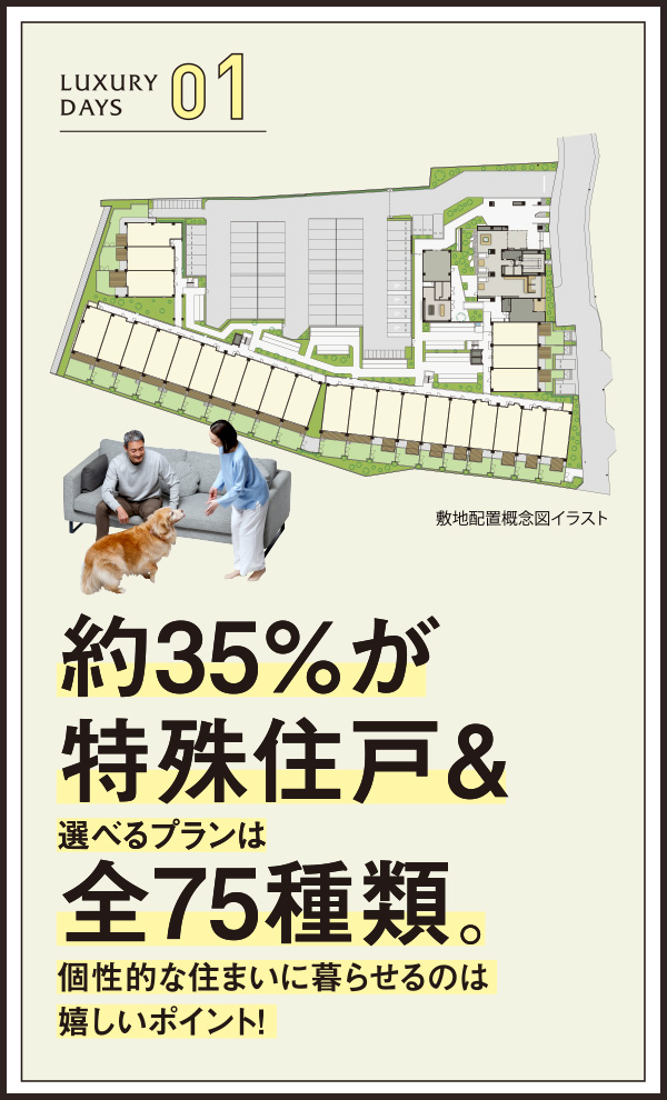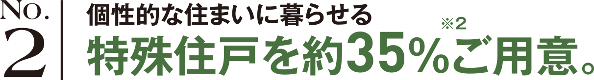 ※2. 総戸数210戸に対して特殊住戸74戸。特殊住戸とは「コンサバトリースペース」「スカイビューテラス」「ルーフバルコニー」「オープンエアスペース」「オープンエアリビング」「オープンエアリビングバルコニー」のいずれかを含む住戸となります。