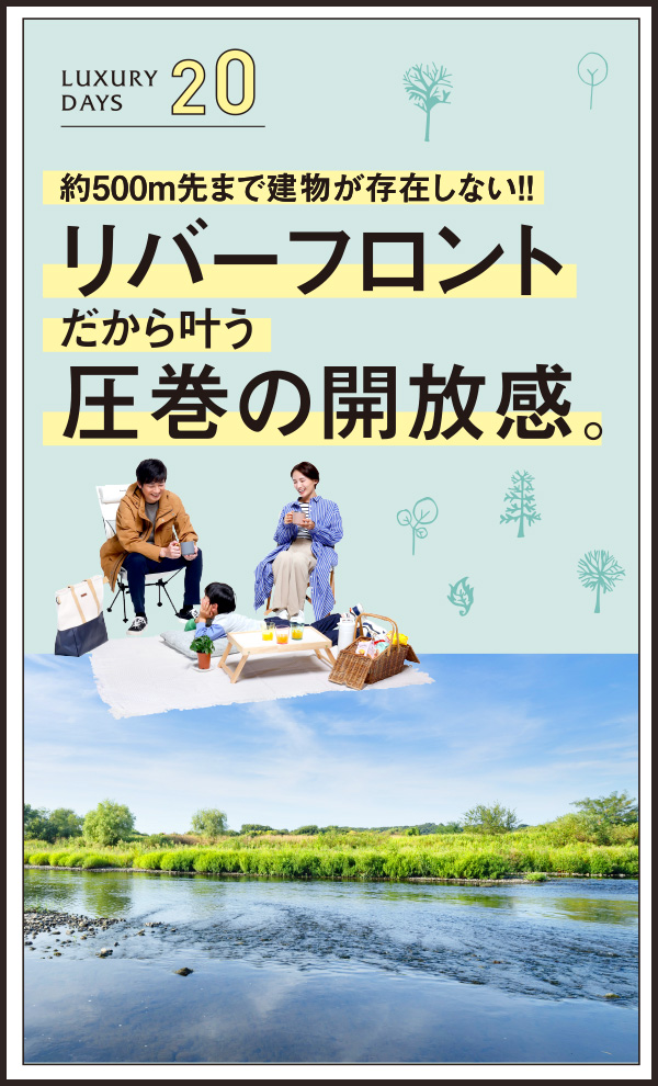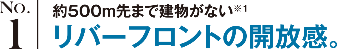 ※1. 現地から対岸までの距離は国土地理院地図計測上の値となります。実際とは異なる場合がございます。※リバーフロントの開放感は南面を向いている住戸のみとなります。
