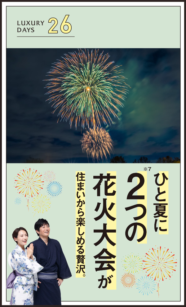 ※7. 花火大会は「立川まつり・国営昭和記念公園花火大会」ならびに「八王子花火大会」を表しております。また、全住戸からすべての花火が見えるわけではございません。