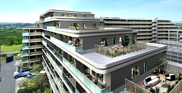 また1階住戸の一部には、専用庭を経由して直接出入りできる専用駐車場付きプランもご用意しました。