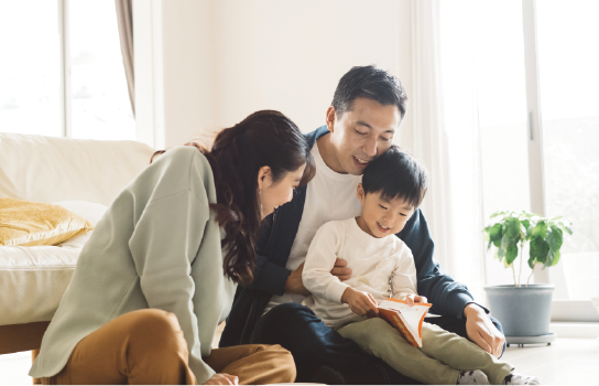 2面採光で明るく開放的な時間を過ごせる3LDKプラン。リビング・ダイニング・キッチンに隣接する洋室(2)は、リビングと合わせて使う事も可能です。急な来客時等に便利なビッグウォークインクロゼット等の収納も豊富です。