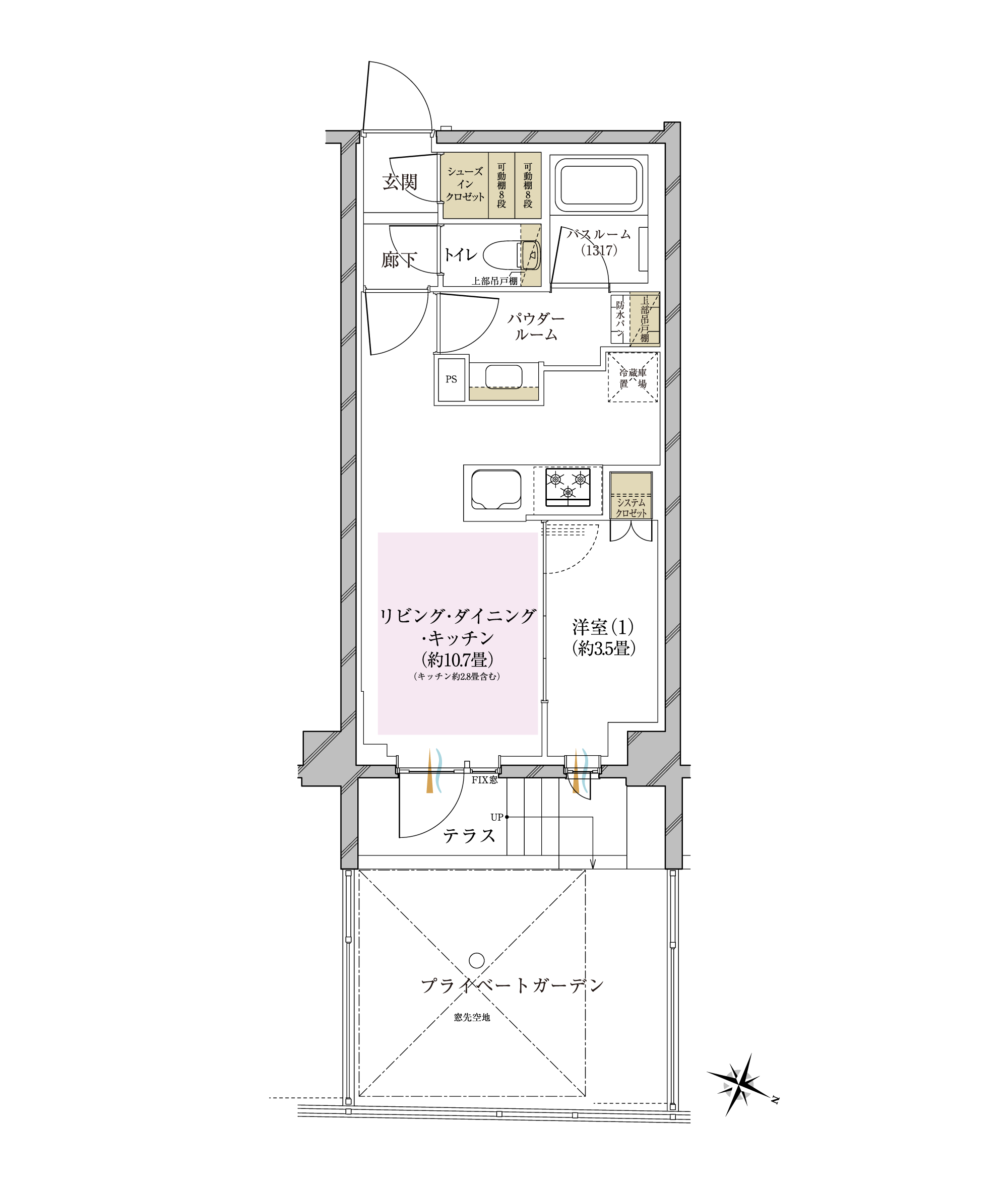プライベートガーデン面積/ 12.93㎡(約3.91坪)