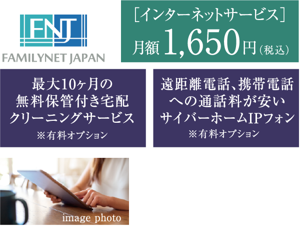 高速インターネット「ファミリーネット・ジャパン」による、最大1Gbps※の光ファイバーネットワークを確立しました。