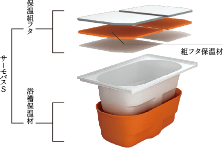 浴槽保温材と保温組フタにより保温効果を高めています。浴槽に張ったお湯が冷めにくい保温構造の浴槽です。