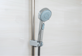 浴槽への出入り動作を楽にする握りバーを採用。スライドフック付きなので、シャワーヘッドをお好みの高さと角度に調節できます。