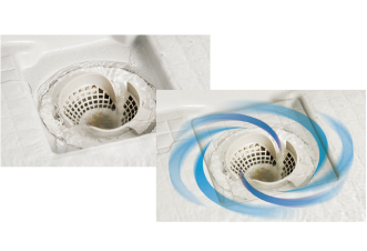 浴室の排水口は排水の勢いで髪の毛などが自然にまとまるので、たまったゴミを簡単に捨てることができます。