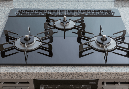 コンロ前には強度に配慮したキッチンディバイダーを設置。料理中の油ハネを防ぎ、見た目の美しさにも配慮しています。