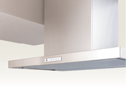 換気扇のレンジフードは機能性とデザイン性を両立したマントル型。整流板は取り外して簡単にお手入れすることができます。