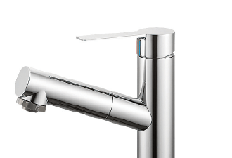 レバーひとつで水量・温度調節が可能。シャワーヘッドを引き出せるのでお手入れがしやすい仕様です。