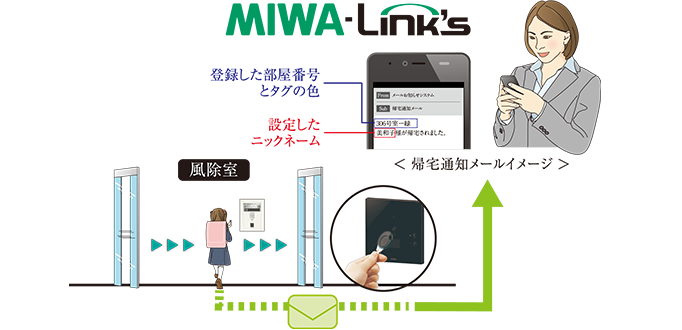 ノンタッチキーの通過情報をメールでお知らせ。ご家族の帰宅時間がわかる見守り機能です。