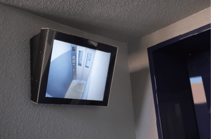 エレベーター内の様子を1階のモニターに表示し、防犯性を向上。