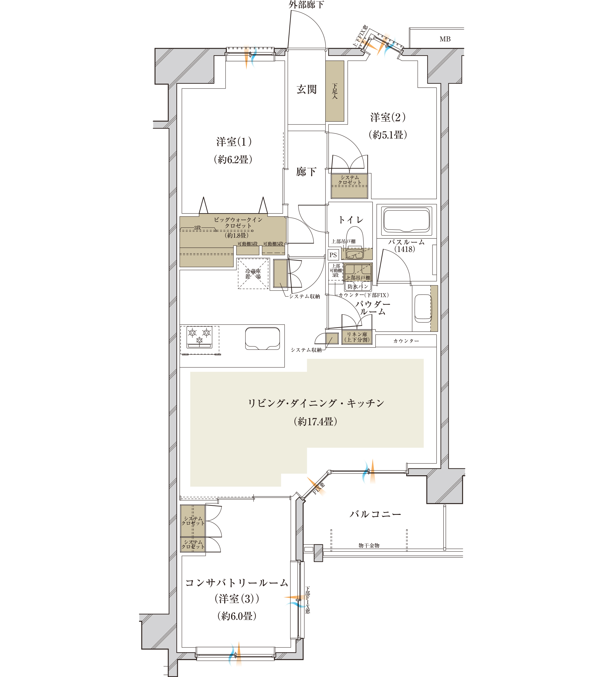 ●収納力豊富なビッグウォークインクロゼットやシステム収納など