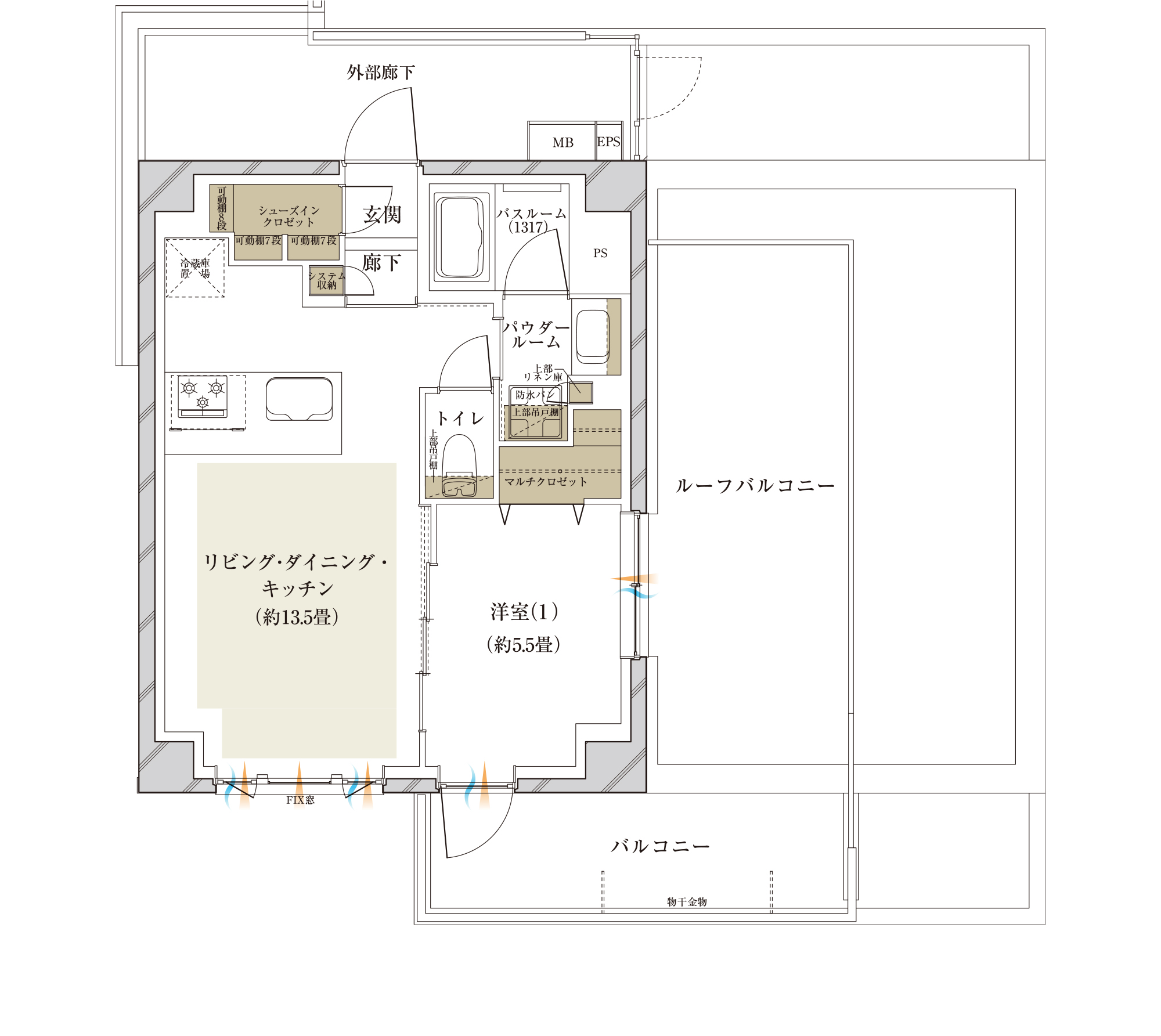 - ●シューズインクロゼットやウォークインクロゼットなど、