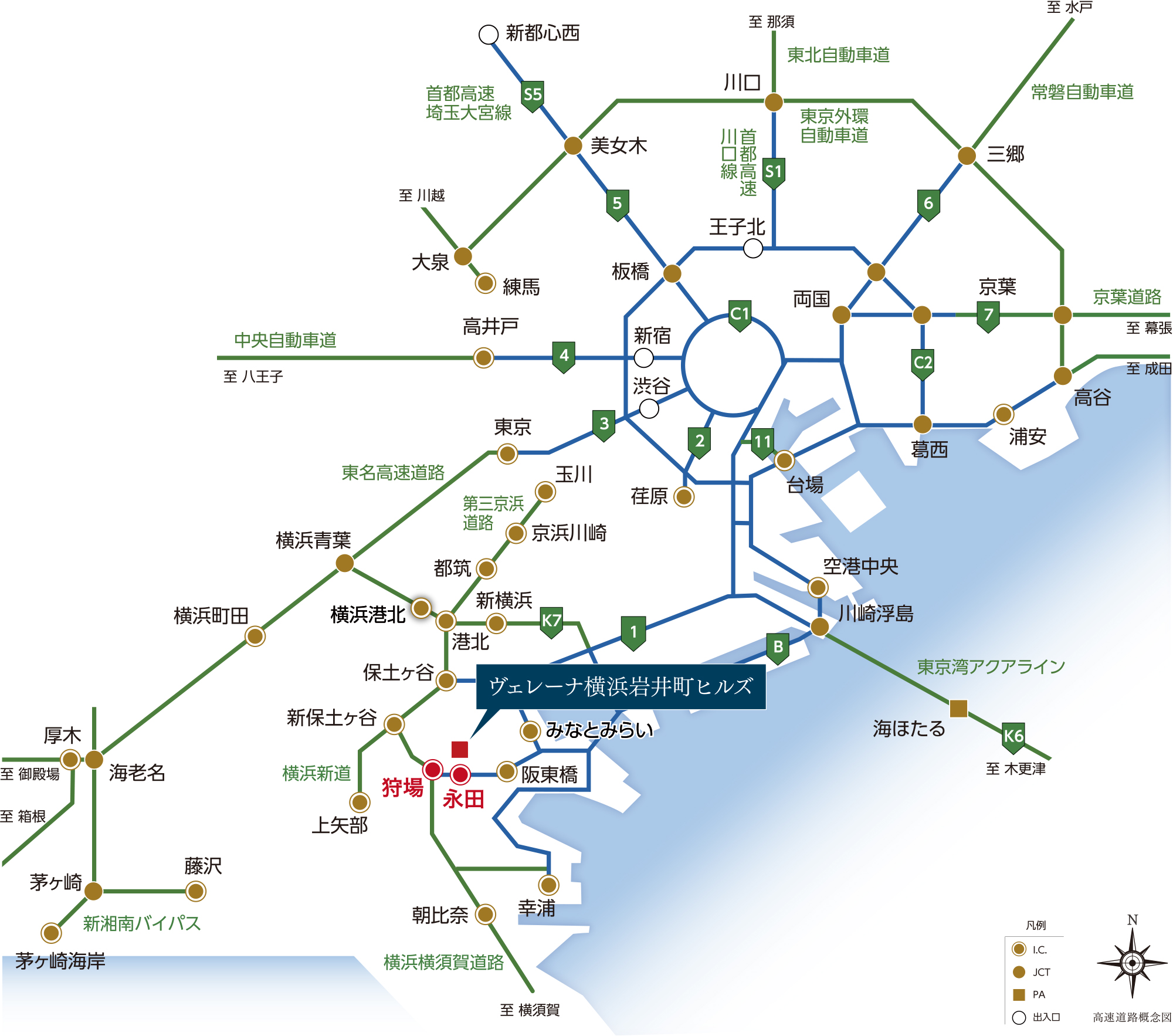 - ※掲載の高速道路概念図は、スケール・位置関係・距離等は実際とは異なります。また、周辺環境は将来に渡って保証されるものではありません。予めご了承ください。