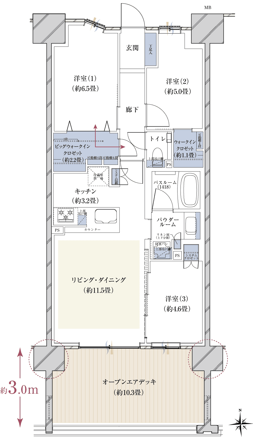 奥行き約3.0mの「オープンエアデッキ」を実現。