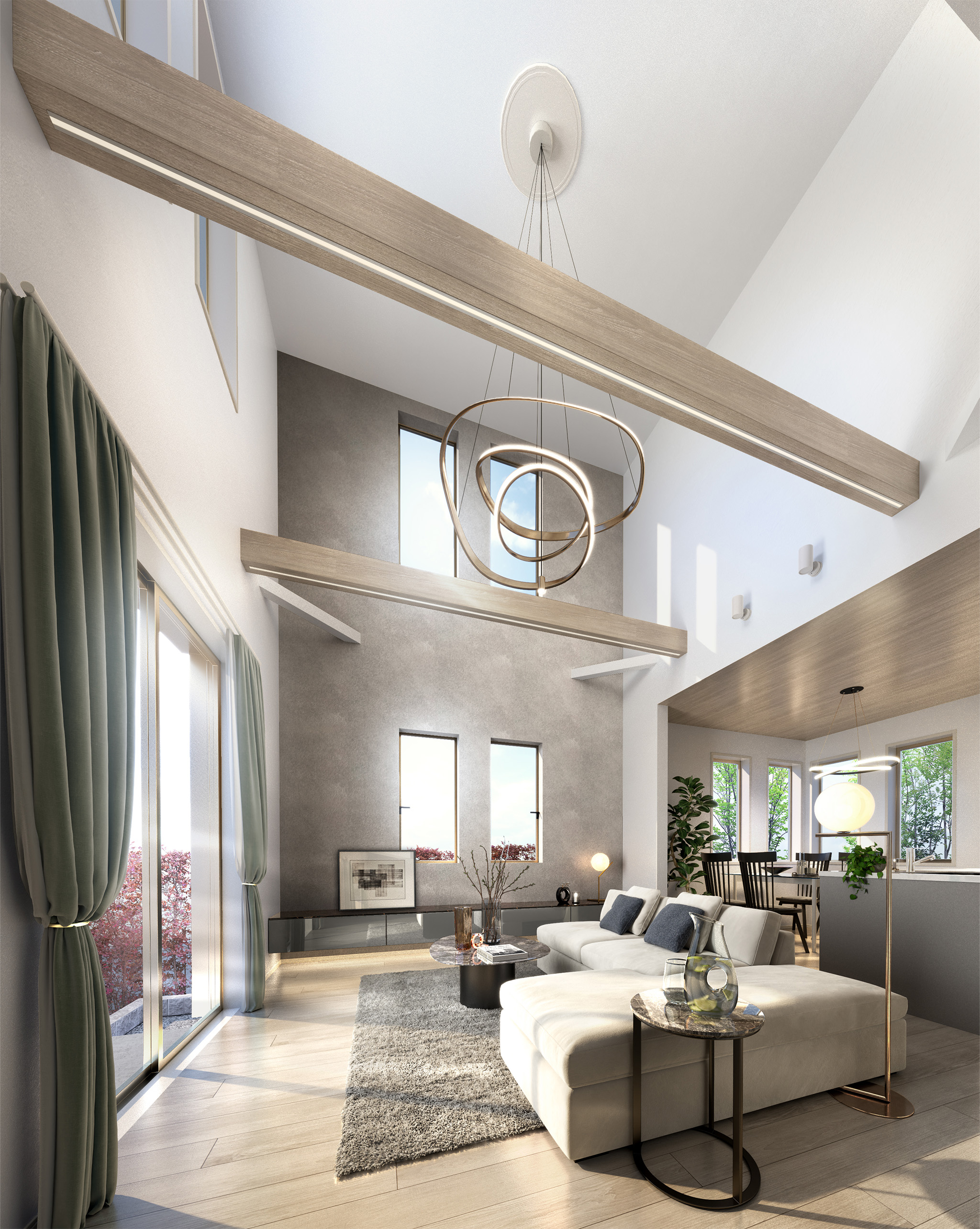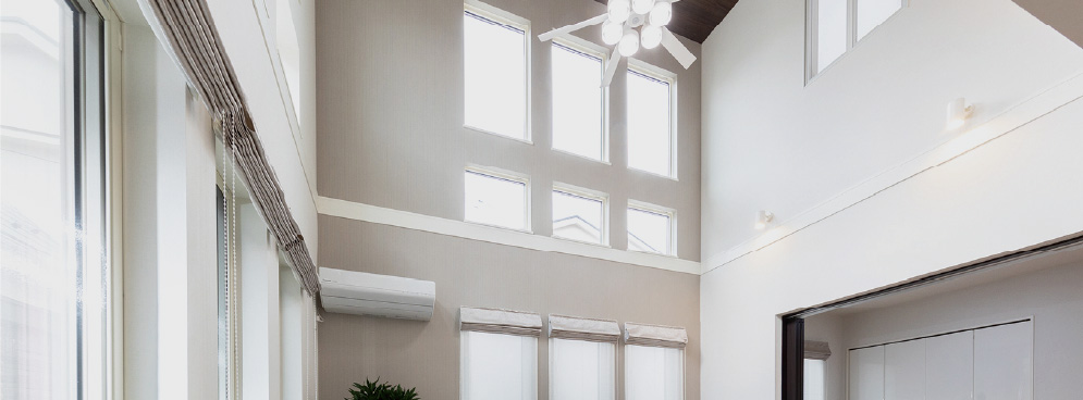 開放感あふれる吹抜けが、光と風を住まい全体に届ける心地よい空間。