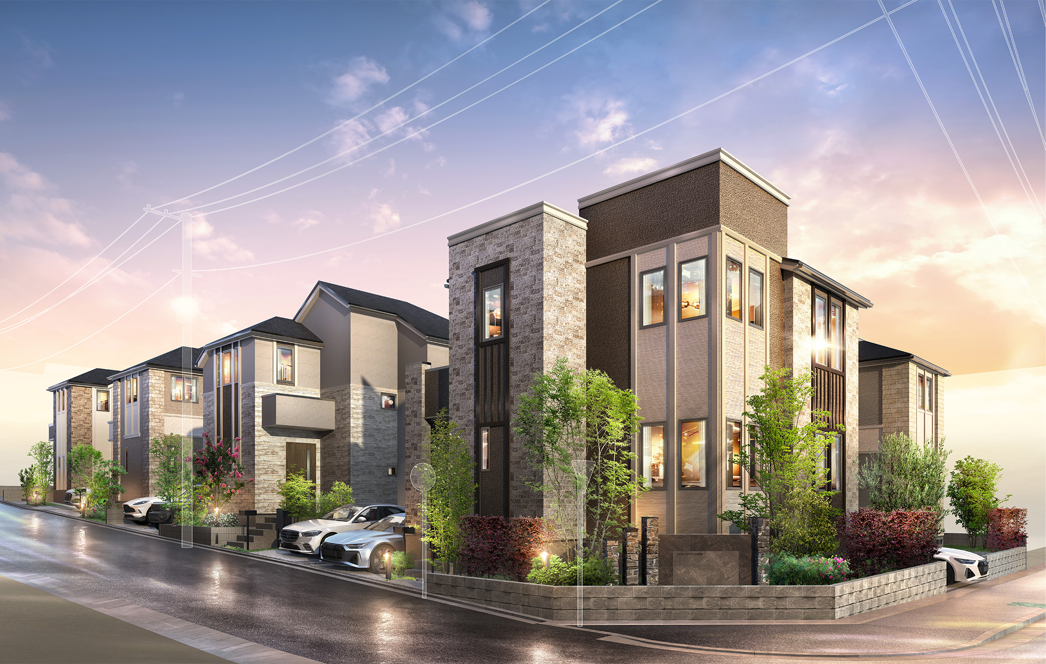 それぞれが美しさを際立たせながらも、全18邸による洗練された景観を描き出しました。
