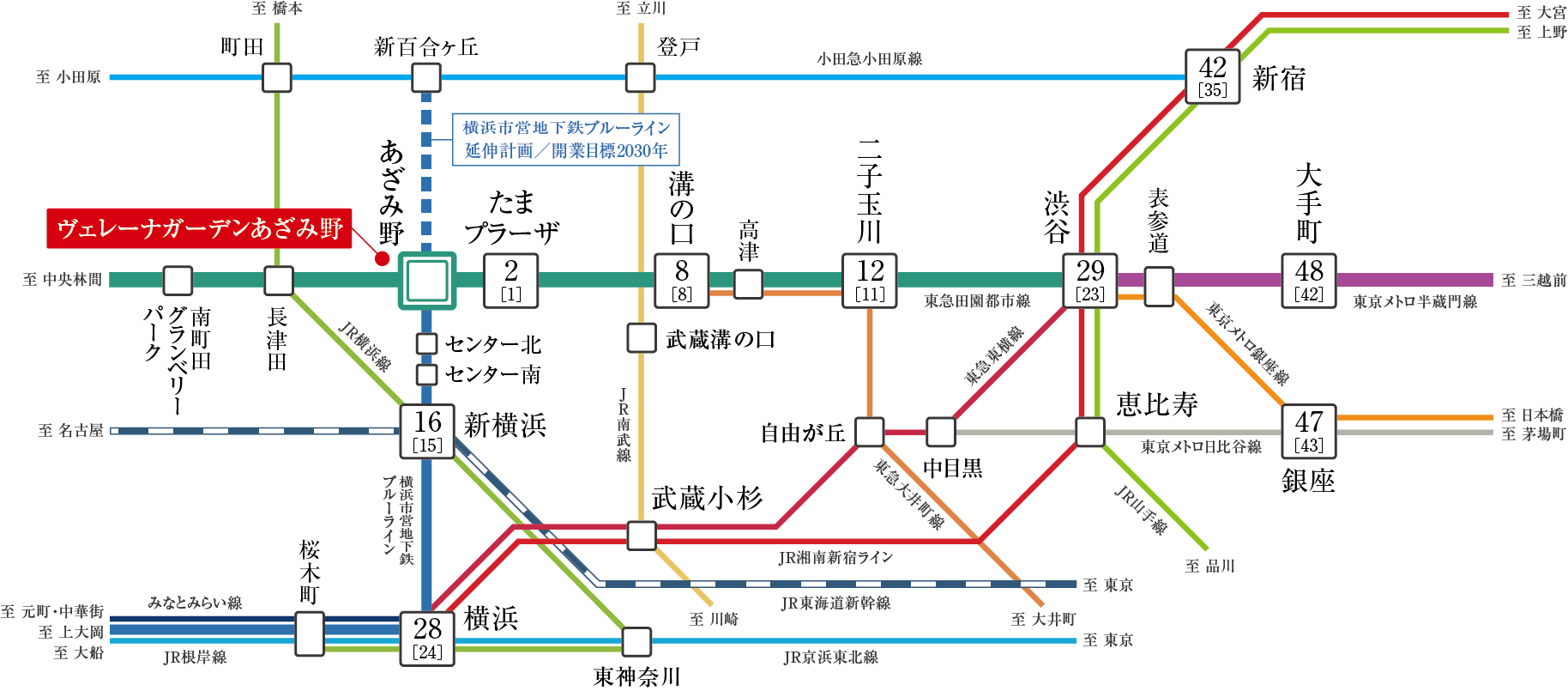渋谷や大手町、横浜へダイレクトに繋がり、都心拠点へ直結する至便なアクセスを実現します。