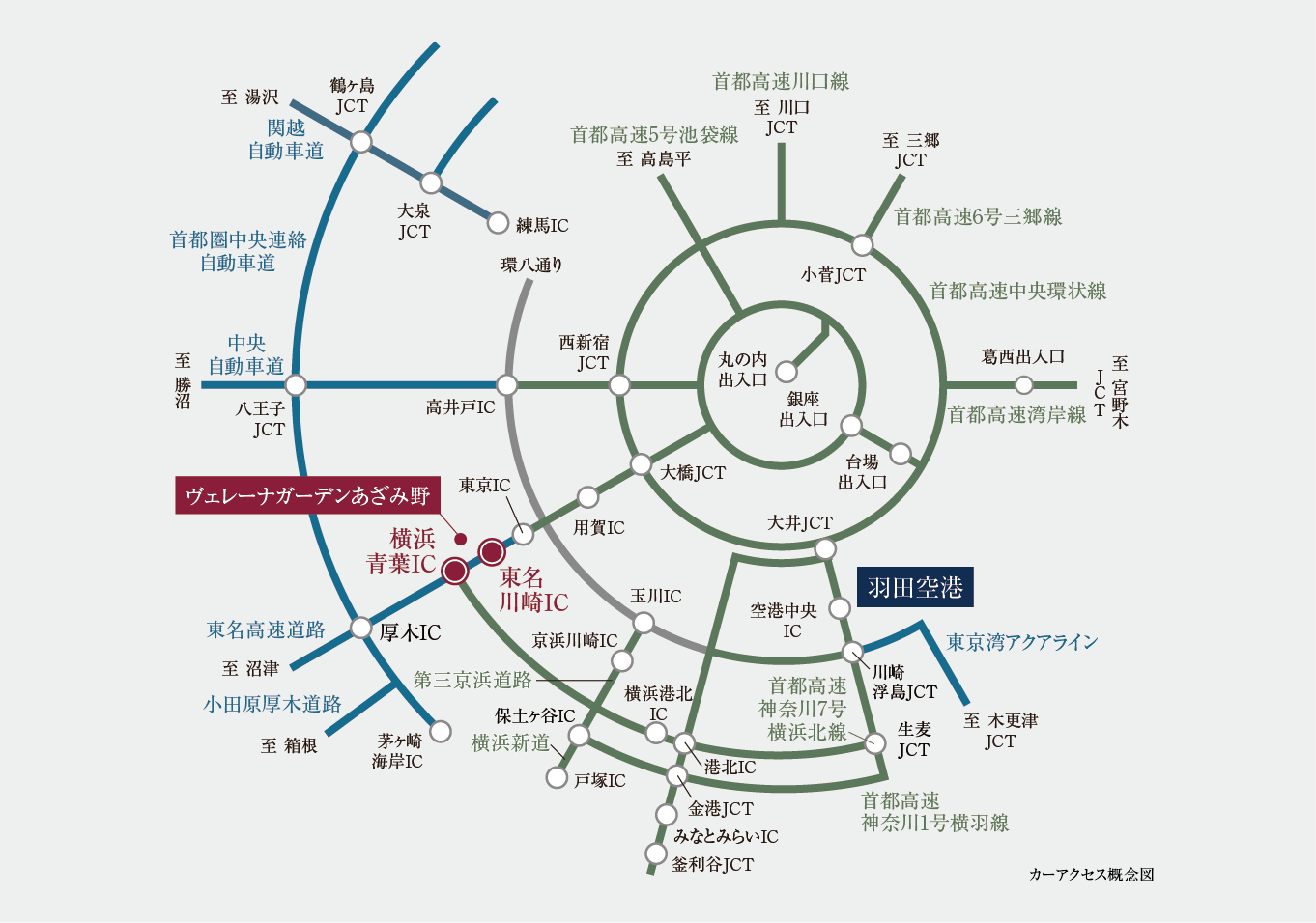 ※掲載のカーアクセス概念図は一部道路・施設等を省略して表記しており、スケール・位置関係・距離等は実際とは異なります。