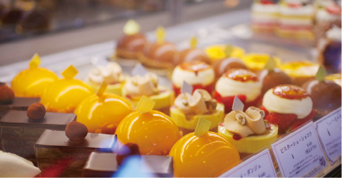 人気のパティスリー黄色い外観が目を惹く人気のパティスリー。数々のコンクールで受賞歴のある及川シェフが、吟味した素材で丁寧に作り上げるケーキは、定番のモンブランをはじめ、毎日30種類ほどのスイーツがショーケースを彩ります。シェフのアイデアで生み出されるオリジナルケーキも豊富なので、訪れるたびに新しい商品に出会えます。