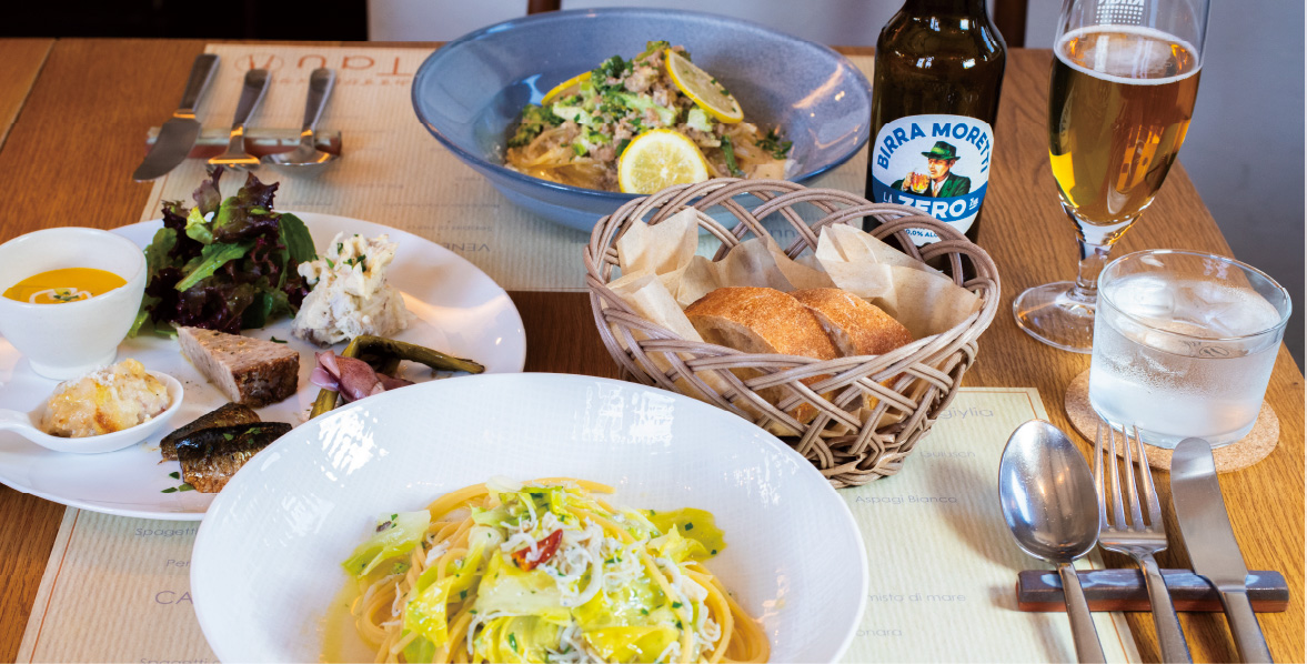 絶品のイタリアン穏やかな住宅街の一角。日本の食材を活かした口に馴染む優しい味わいのイタリアンを求めて、お子さま連れファミリーからご年配の方まで幅広い世代が訪れる人気店です。ランチはオイル系・トマト系・クリーム系の3種のパスタを選べるコースを提供。ディナーはコースやアラカルトで自由に楽しめます。