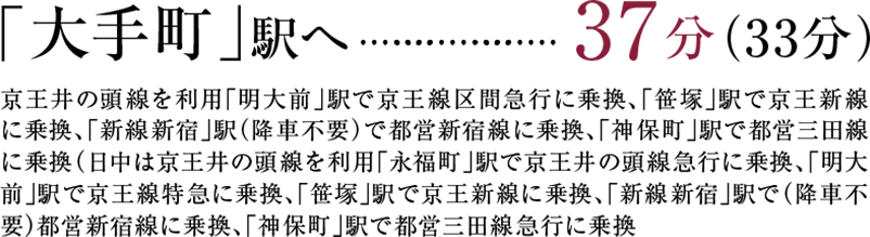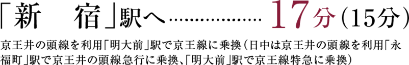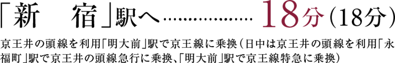 「明大前」駅で京王線特急に乗換、「新宿」駅でJR中央線快速に乗換 -