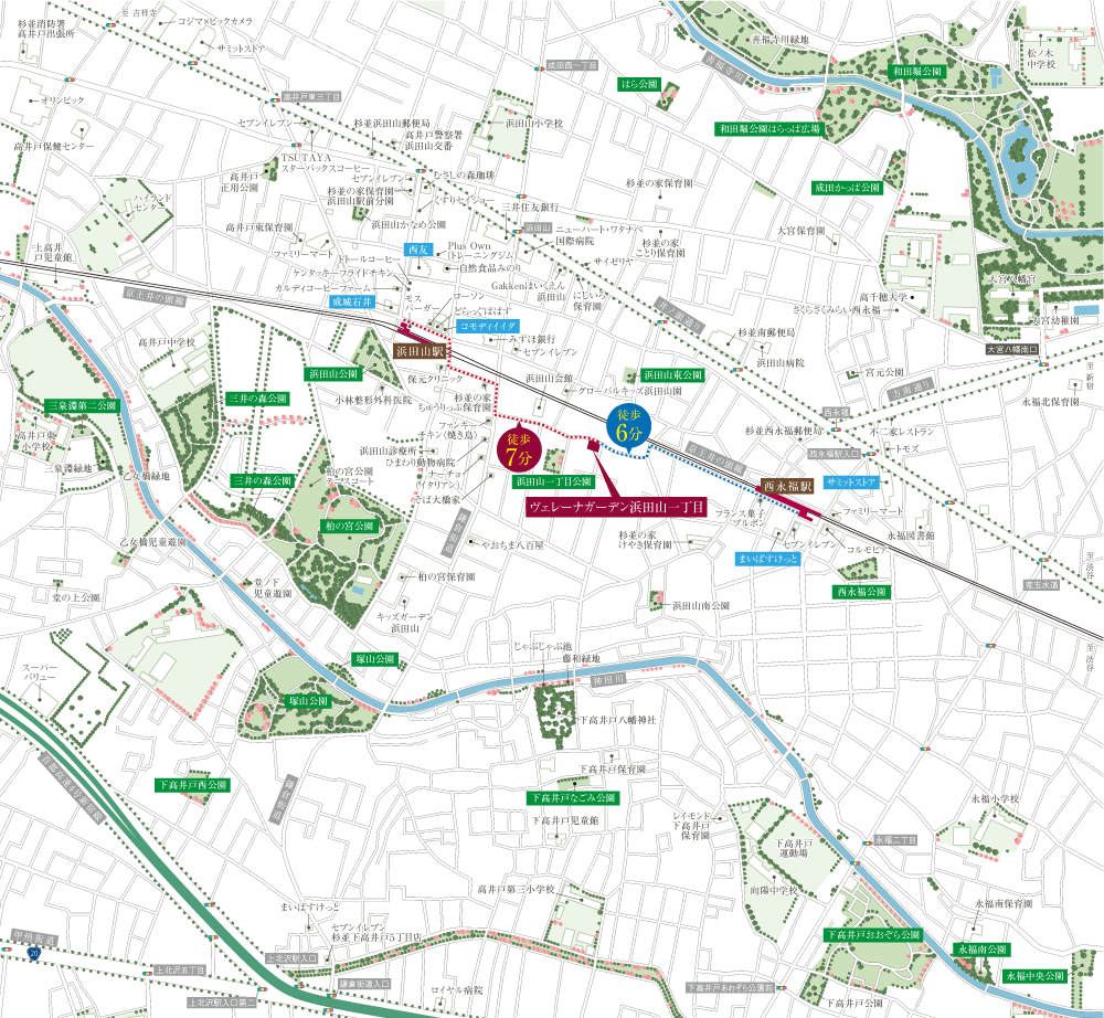 - 杉並区立西永福公園約540~570m・徒歩7分(1〜3号棟)