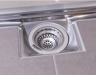 ステンレス仕上げお手入れカンタンな「排水口」