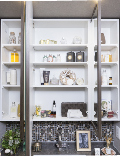 三面鏡下に設けたデザイン性のある「モザイクタイル」