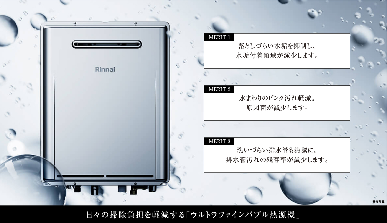 直径1マイクロメートル未満の微細な泡“ウルトラファインバブル”を含んだお湯を使用できる「ウルトラファインバブル熱源機」を採用。