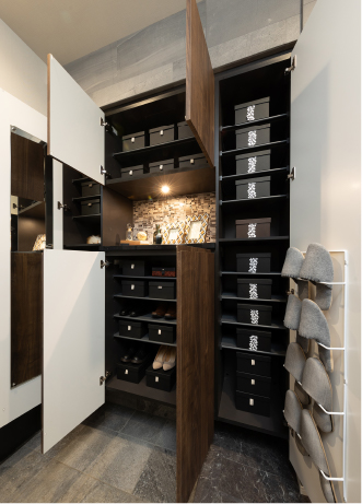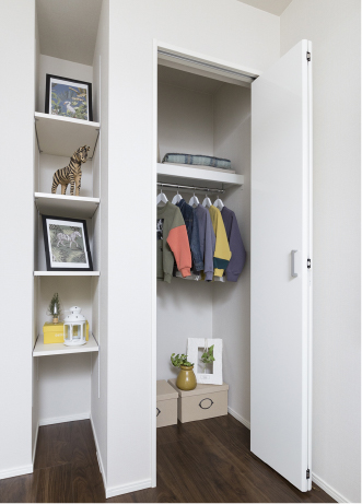 また、ベッドルームにウォークインクロゼットやクロゼット、玄関にシューズボックスを設置するなど、多彩な収納スペースを設けました。 -