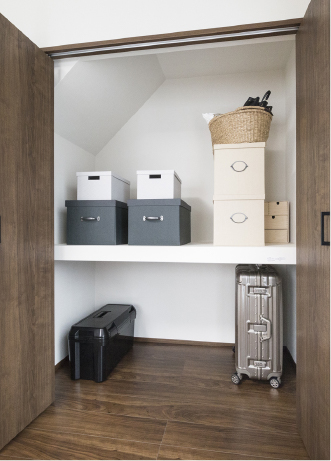 小屋裏には季節家電等の収納にも便利な固定階段でアクセスできるビッグウォークインストレージを確保しました。