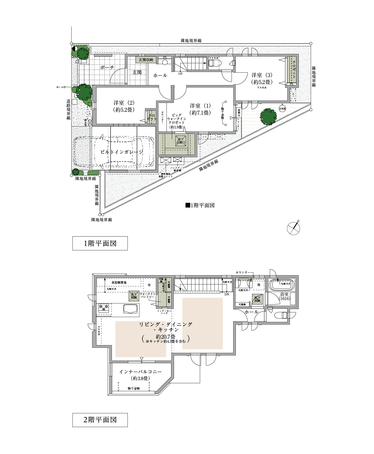 - ※掲載の区画図は設計図を基に描き起こしたもので、一部省略して表現しております。また、計画段階のもので、今後、行政等の指導及び施工上の理由等で変更が生じる場合があります。詳しくは設計図等でご確認ください。