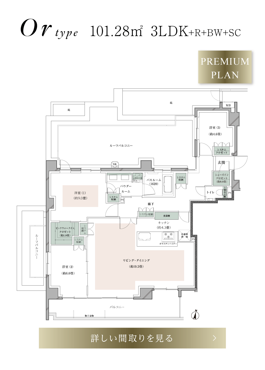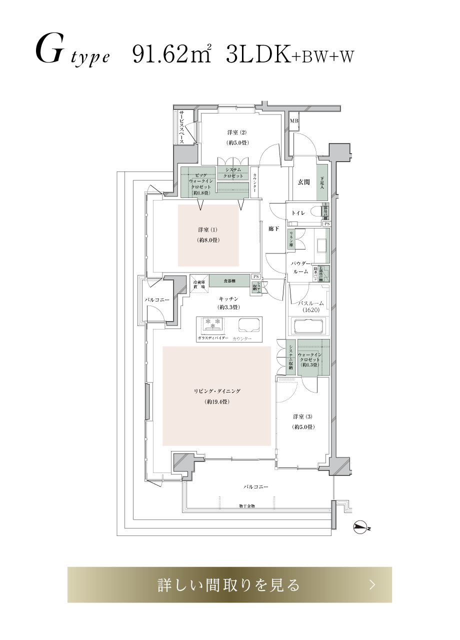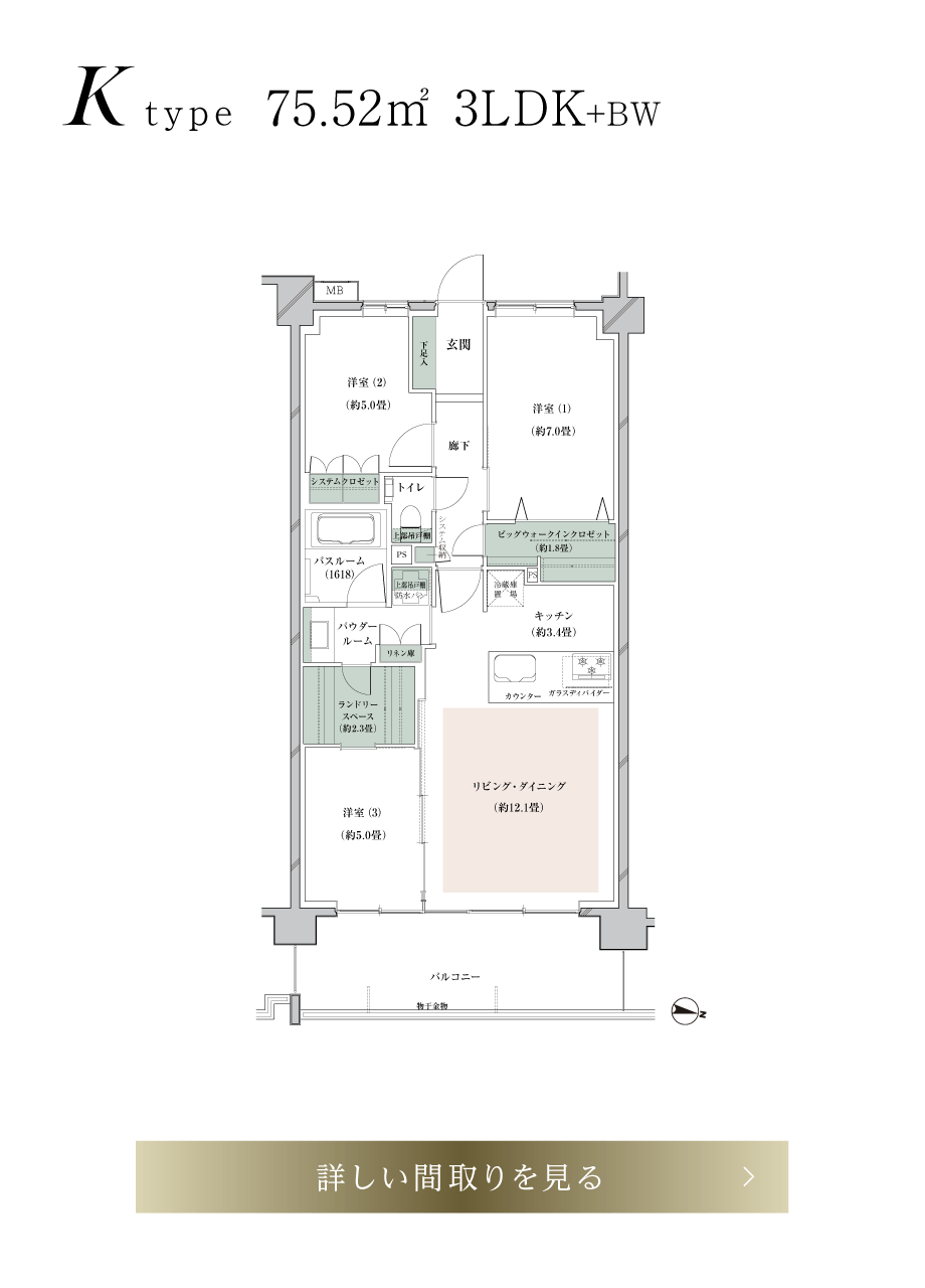 ※W=ウォークインクロゼット、BW=ビッグウォークインクロゼット、